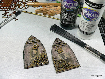 If you have been following my personal blog (Von Pappe II) or the steampunk challenge blog I am running (SanDee&amelie's Steampunk Challenges) you may already know that today's make and post over here form the missing part and tutorial for a duo of arch shaped mixed media panels I've made.
